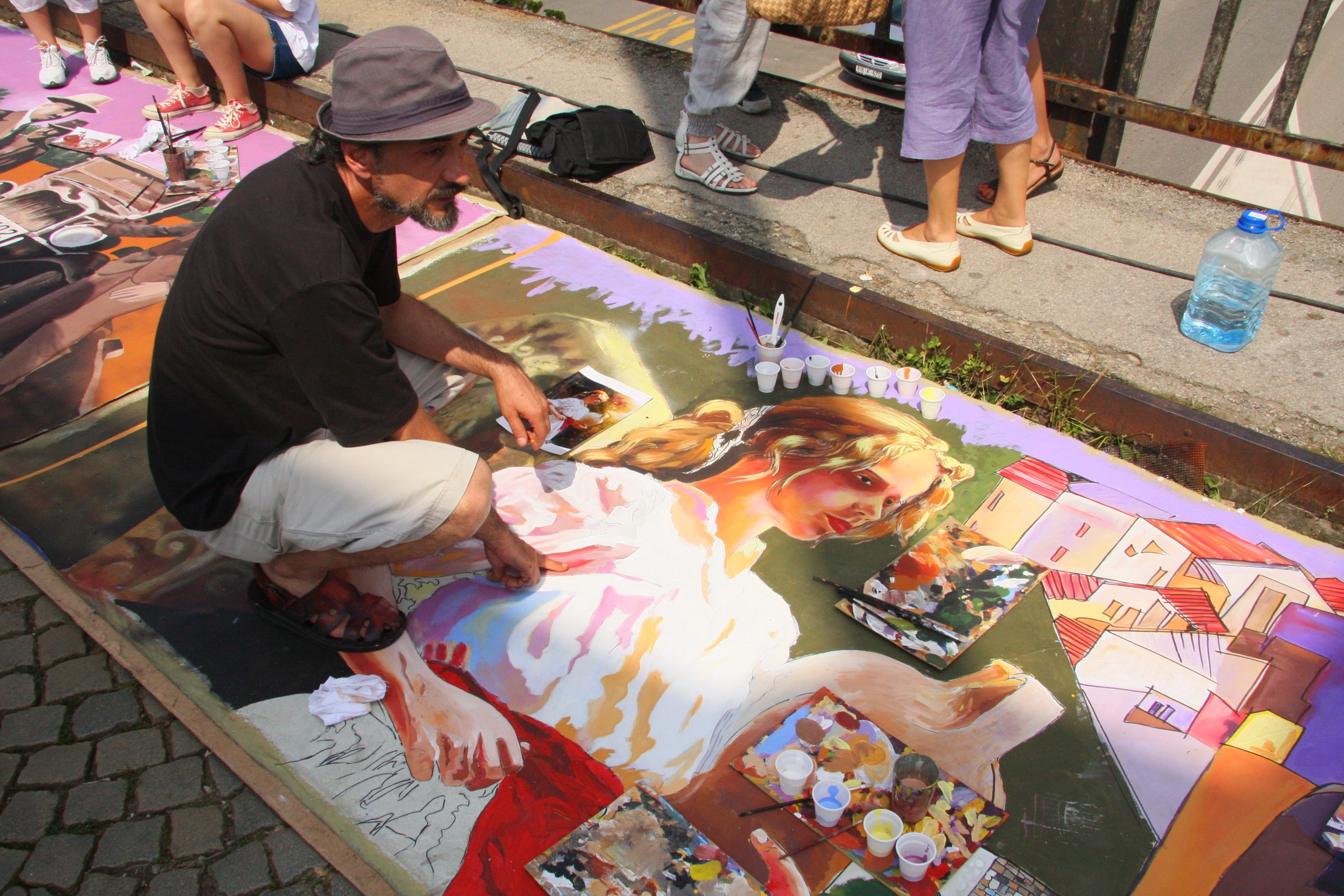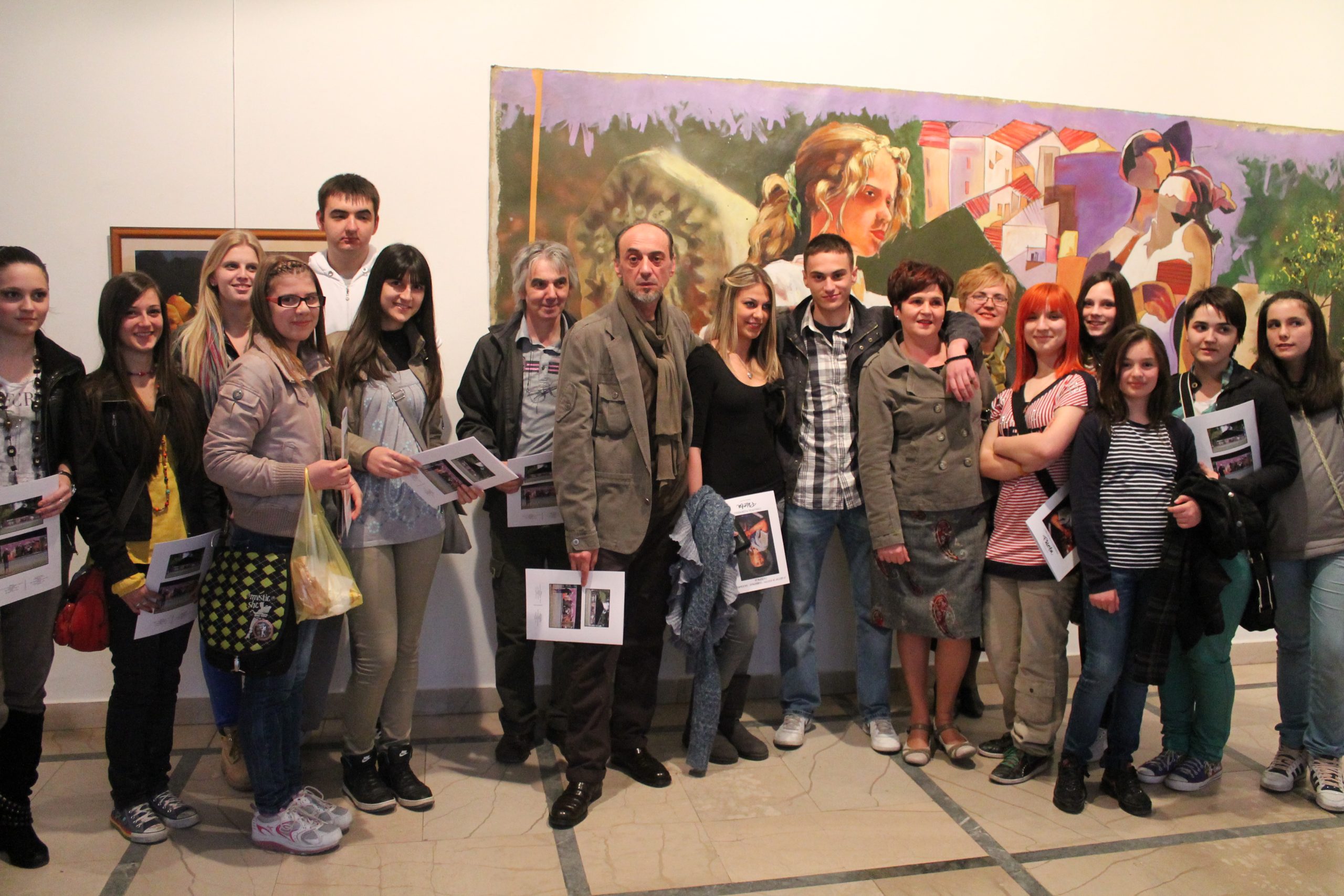 On the occasion of celebrating 600 years of town of Zvornik, members of the workshop “Paleta” painted 3 canvases with a total length of 12 meters and width of 2 meters. The canvases were spread out on the bridge and people from both sides of the Drina River had the chance to watch the process of creating this marvelous piece of art. The first painting shows the Town Museum and Blagojevic brothers standing by the very first car in Zvornik. The second painting shows Town Gate and the character of Byzantine princess popularly known as “Jerina the cursed,” who is thought to have lived in the City Tower. The third painting displays city coat of arms, Bridge of King Alexander I Karadjordjevic, Town Gate and the medieval town of Zvornik called “Kula Grad.”