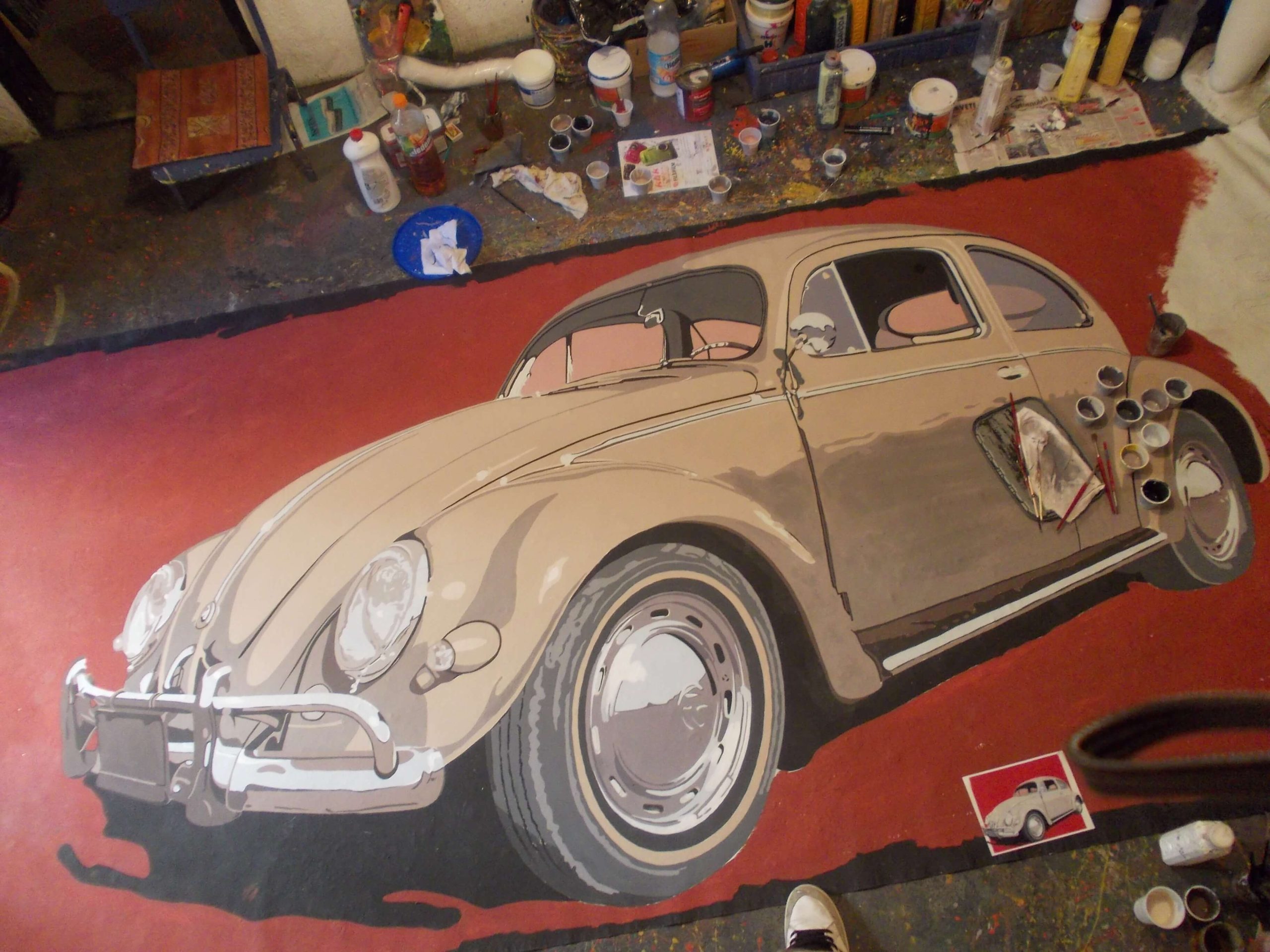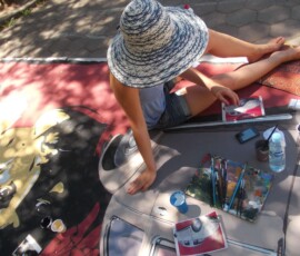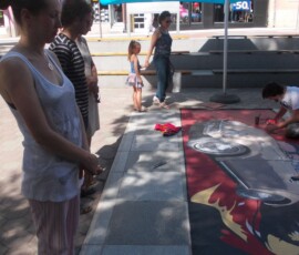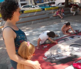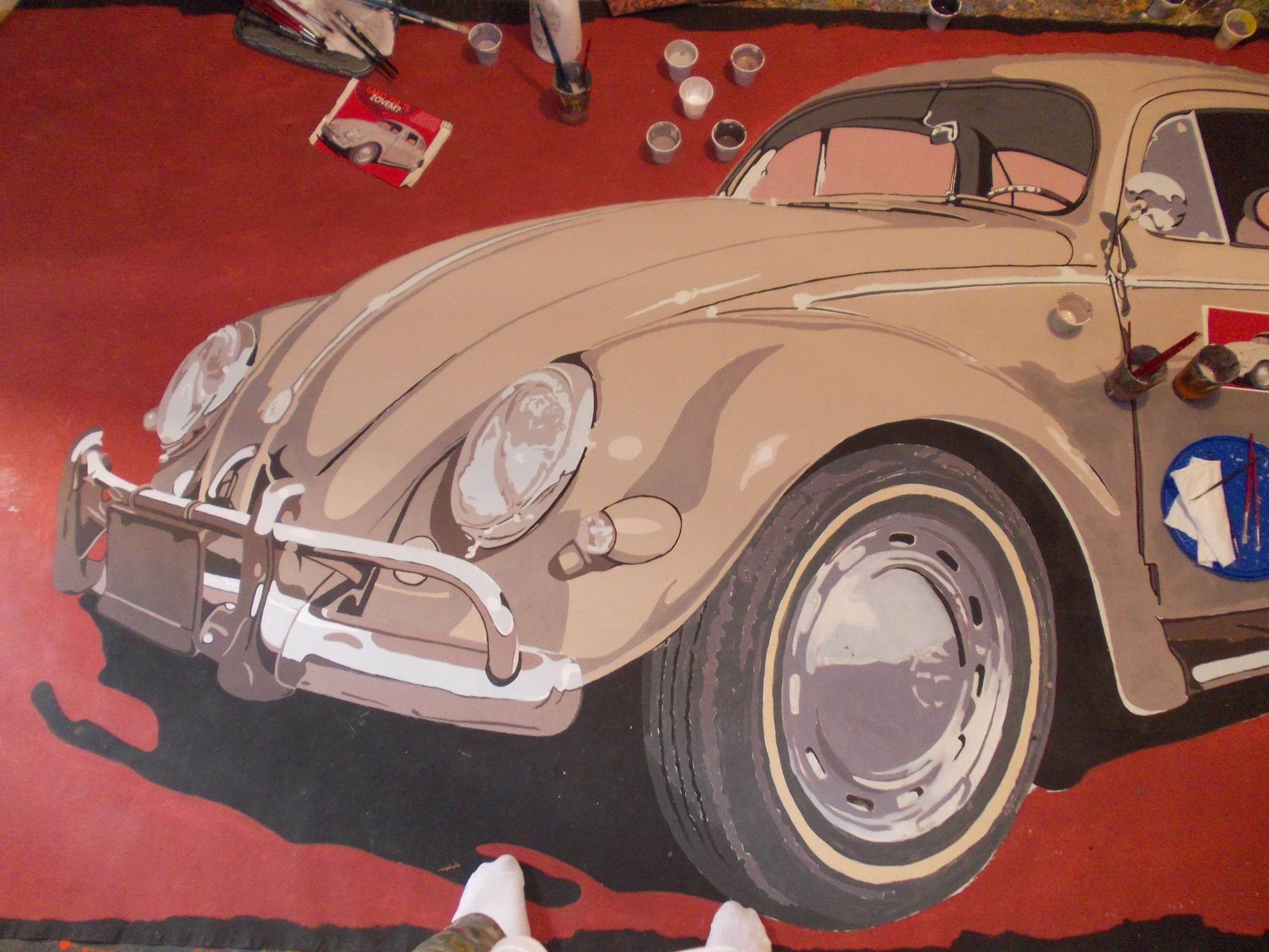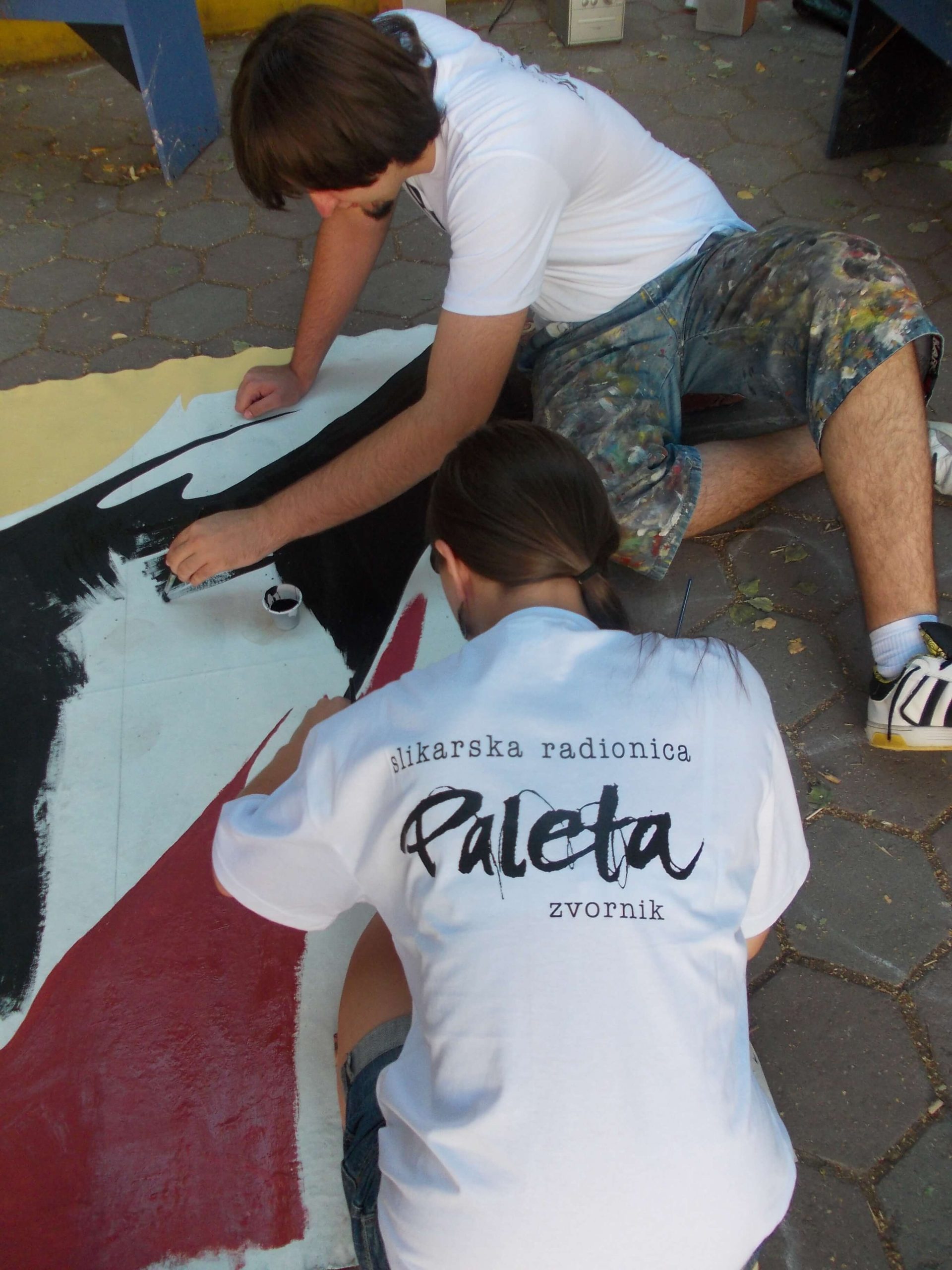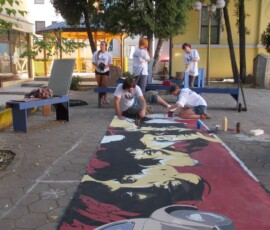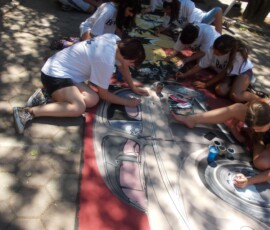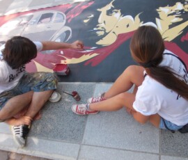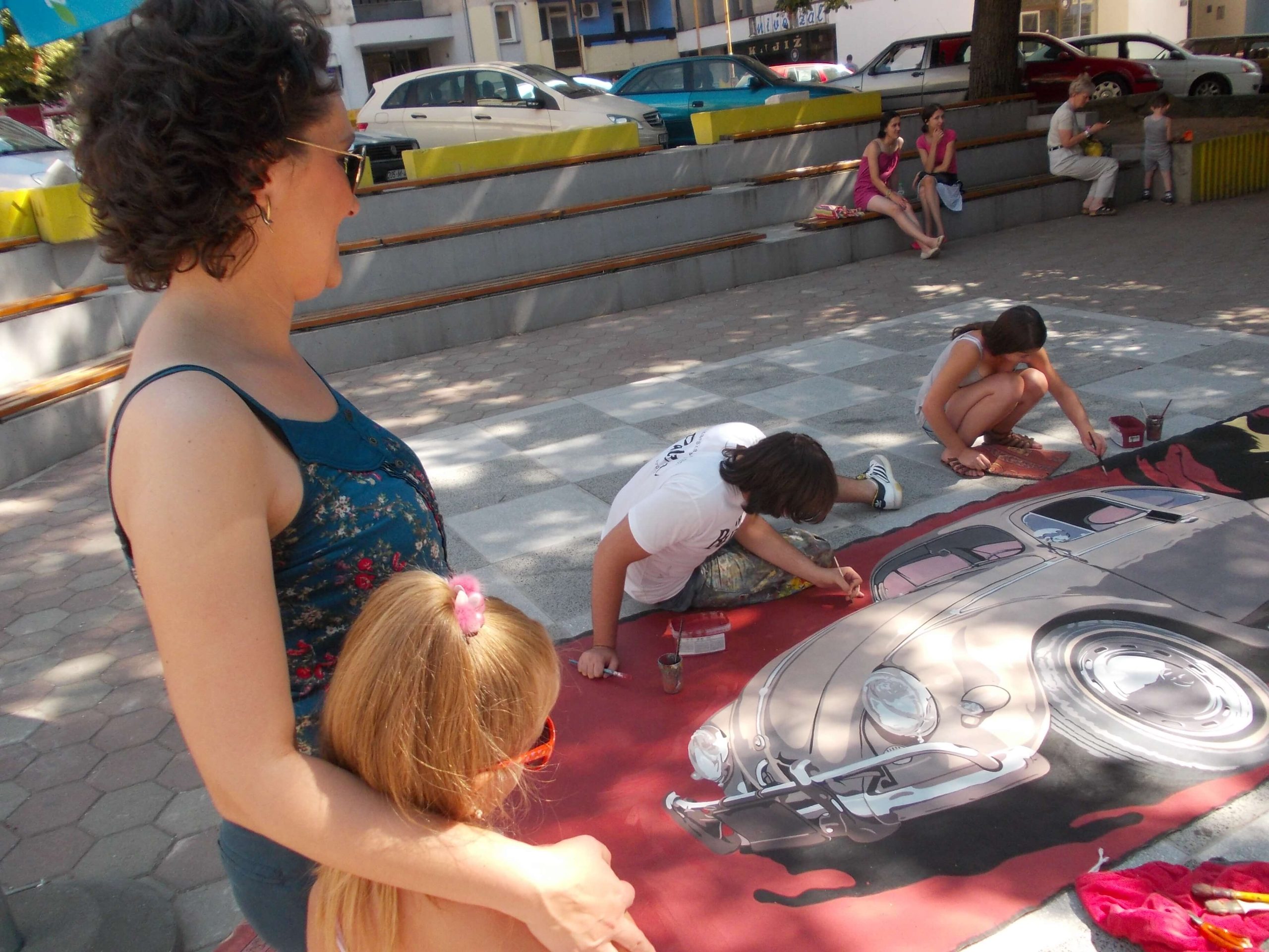 “Hey Beetle, Tell Me How To Call You” was carried out in Zvornik in 2013, as a part of OSCE project “What prejudice cannot see.” The project involved 12 members of the workshop “Paleta.” This piece of art was created by painting canvases on the pavement (Street Art), more precisely in front of the Town Museum where the workshop itself is situated. The project was inspired by Volkswagen’s car “Beetle” and “The Beatles” – the famous rock band from Liverpool. Beetle car is one of the renowned representatives of the hippie movement. It appeared in many movies and popular comic books, such as Dylan Dog. This type of car is considered one of the most popular and best-selling cars of all times. The Beatles were, and probably still are, an iconic rock band from Liverpool. They are widely regarded as the most successful and most recognized band of the rock era.
